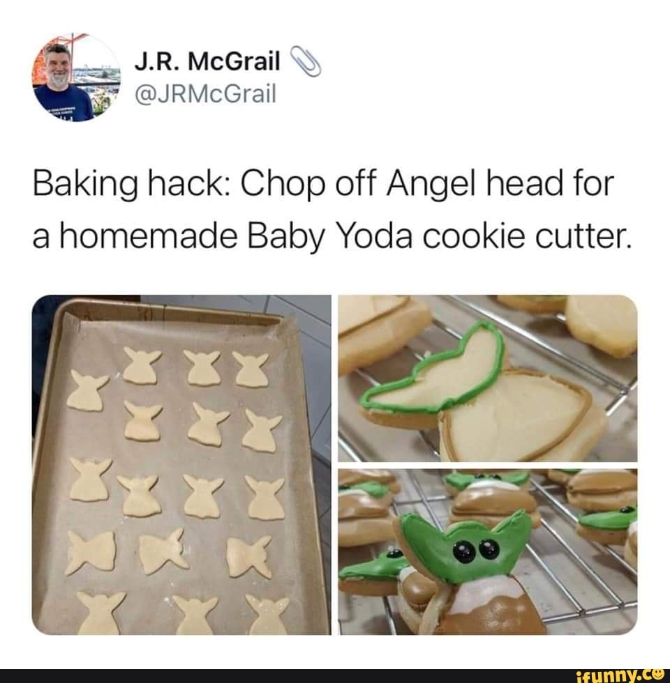 Just imagine them sans head. December 19 2019 January 25 2021 by. Katy Atakturk atakturk shared her genius cookie hack on Instagram saying When you chop off the head of an angel cookie cutter it sorta looks like Baby Yoda.