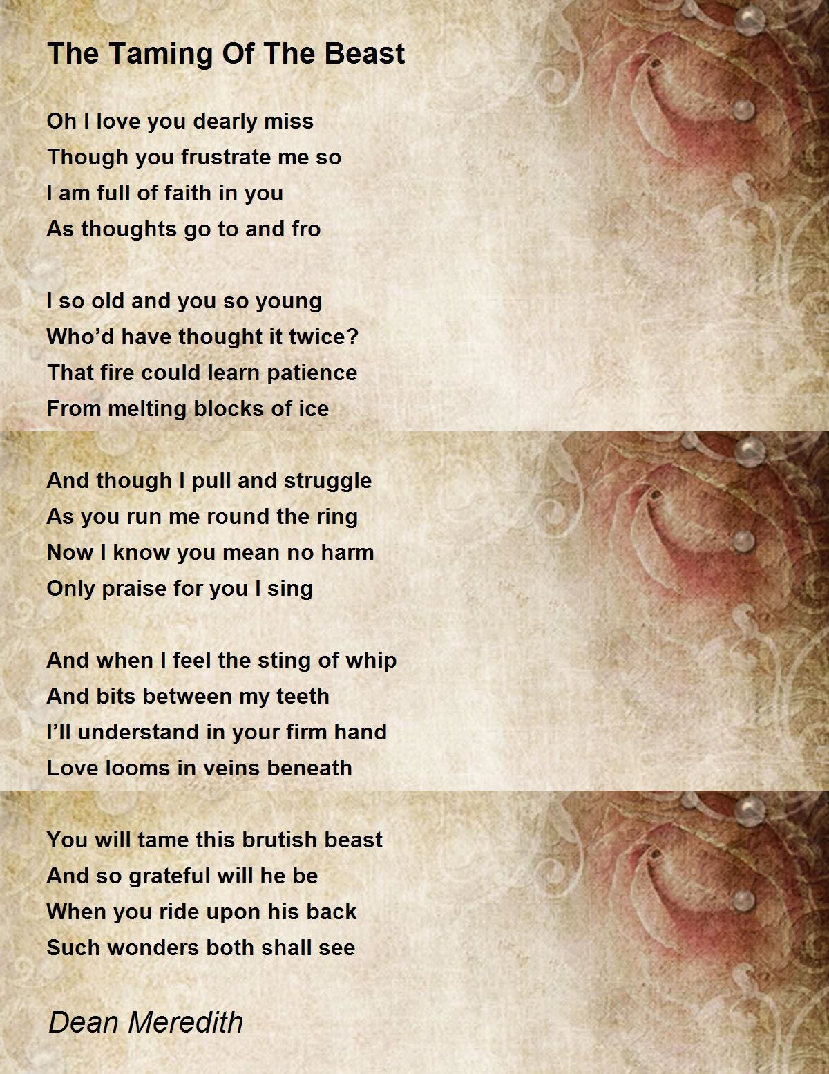 8 quotes from Taming the Beast. As with all of his plays Shakespeare brings his many characters to life with memorable dialogue and some memorable quotes. Download or share this Emily Maguire Taming the Beast quote with your friends on facebook linkedin whatsapp twitter and on other social media.