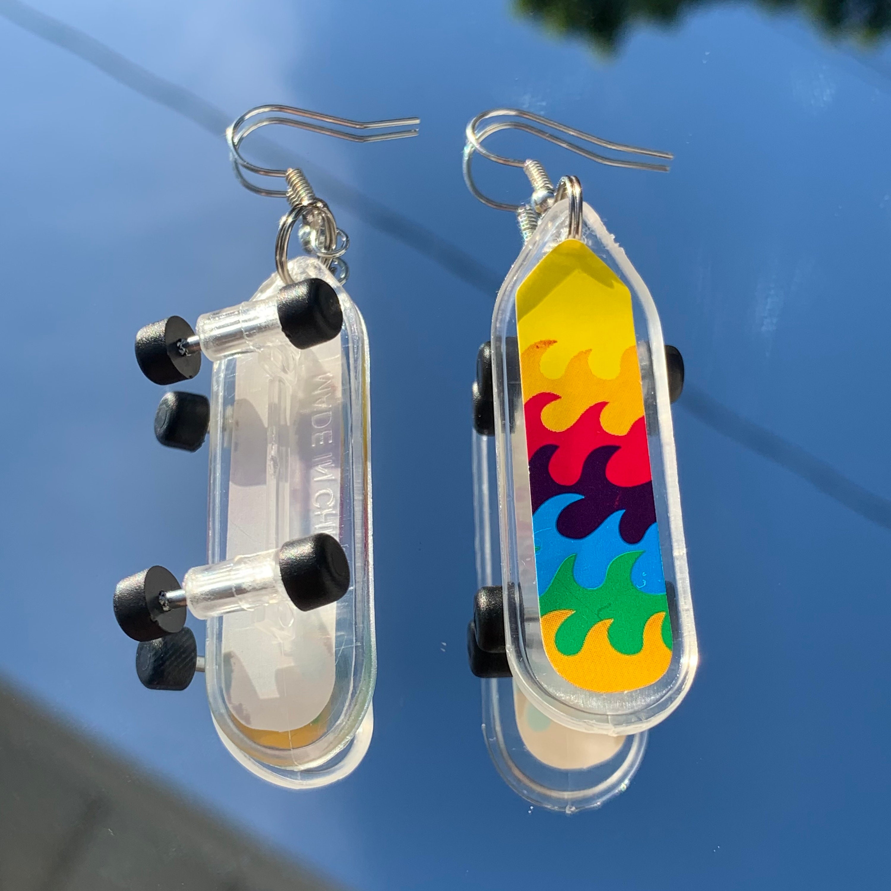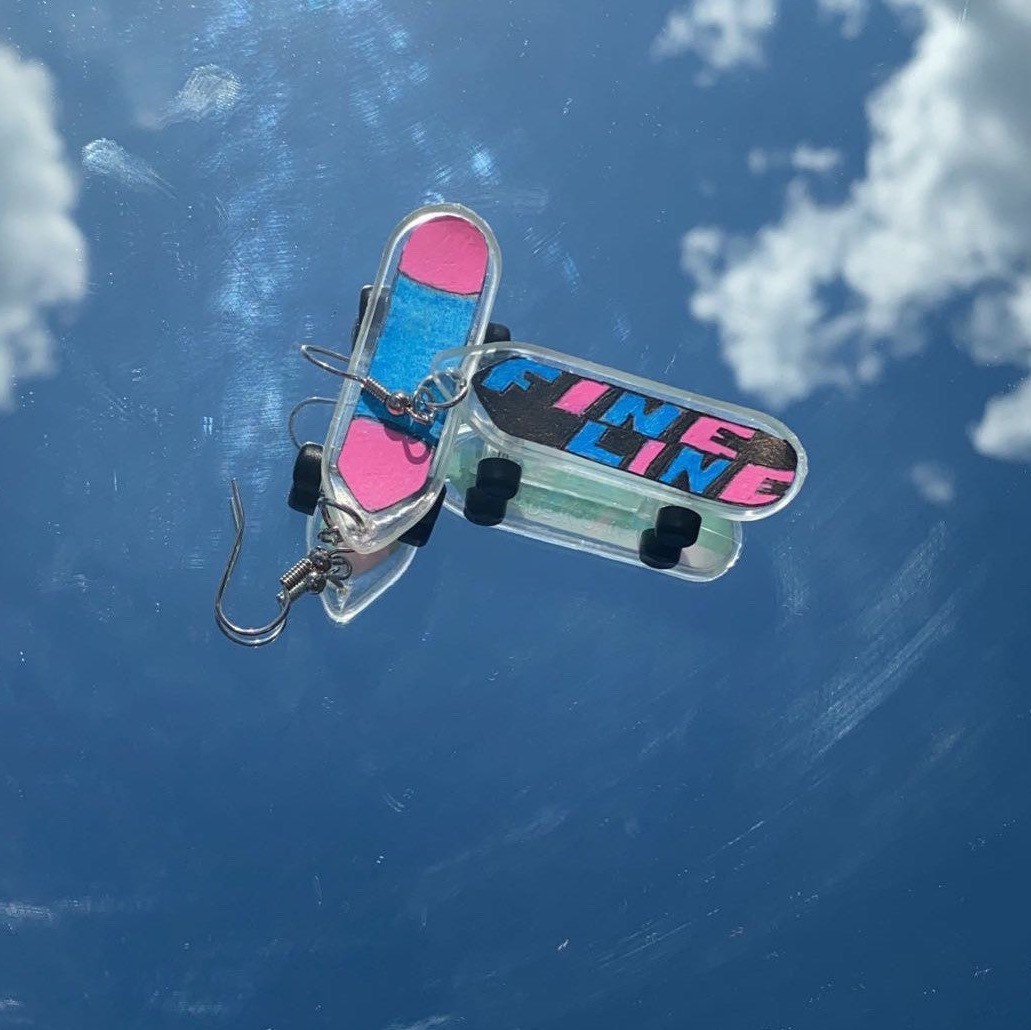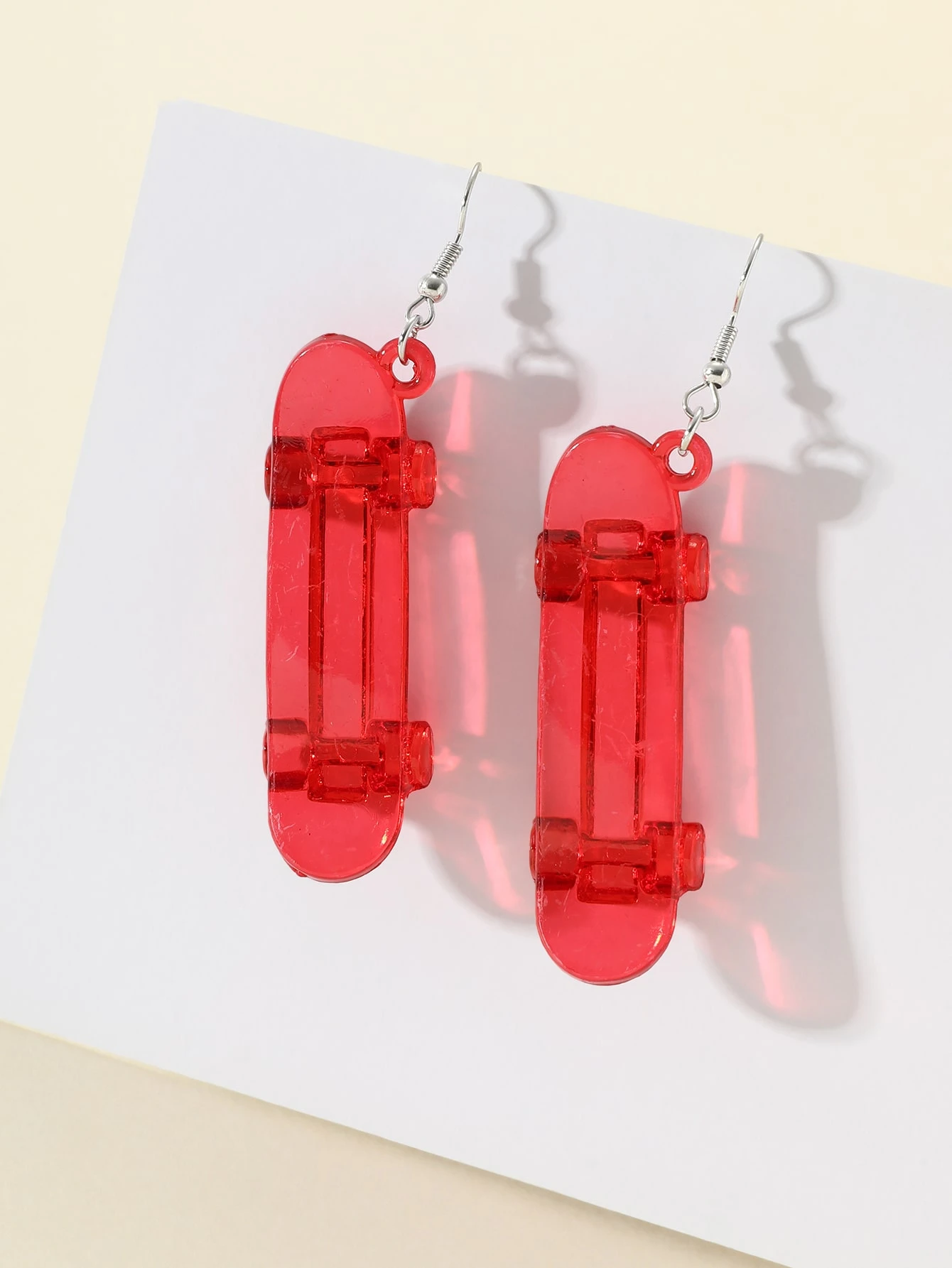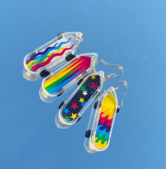 Mini skateboard earrings. Adorable tiny plastic skateboard earrings. Shop Clear Skateboard Drop Earrings at ROMWE discover more fashion styles online. Theyll go great with any outfit you can even wear them to a wedding.