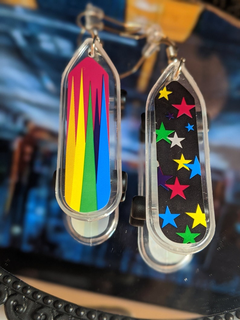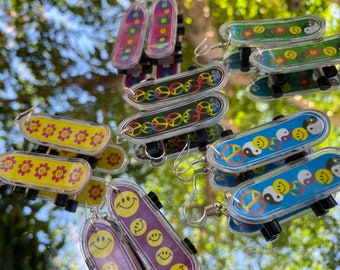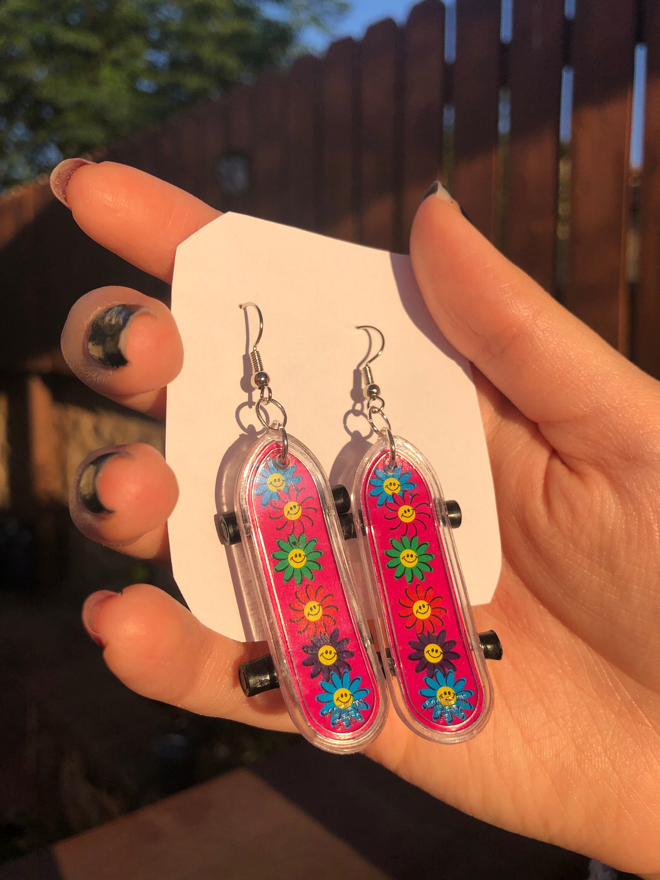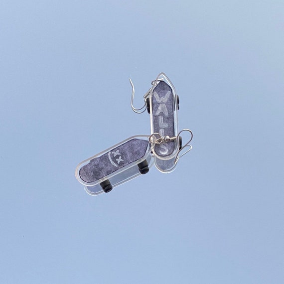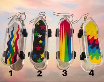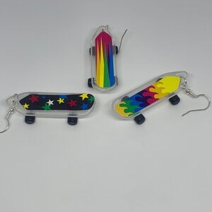 Mini skateboard earrings. Adorable tiny plastic skateboard earrings. Shop Clear Skateboard Drop Earrings at ROMWE discover more fashion styles online. Theyll go great with any outfit you can even wear them to a wedding.